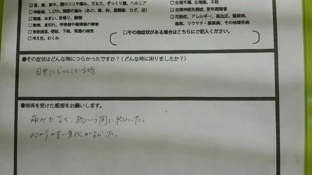 ふともものしびれまで取れて,ホンマ不思議